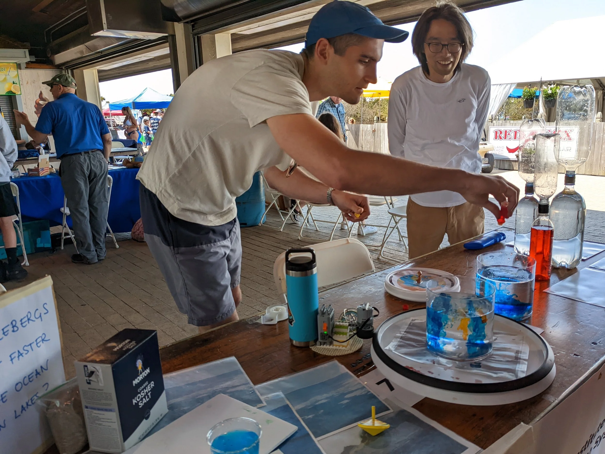 These events for the public included many other booths with information about New Jersey’s oceans and beaches. Our table included the classic rotating vs. non-rotating demo using the DIYnamics lego kit, as well as the beloved tornado-in-a-bottle and a really nice demonstration of the effect of salinity on the rate of ice melt.